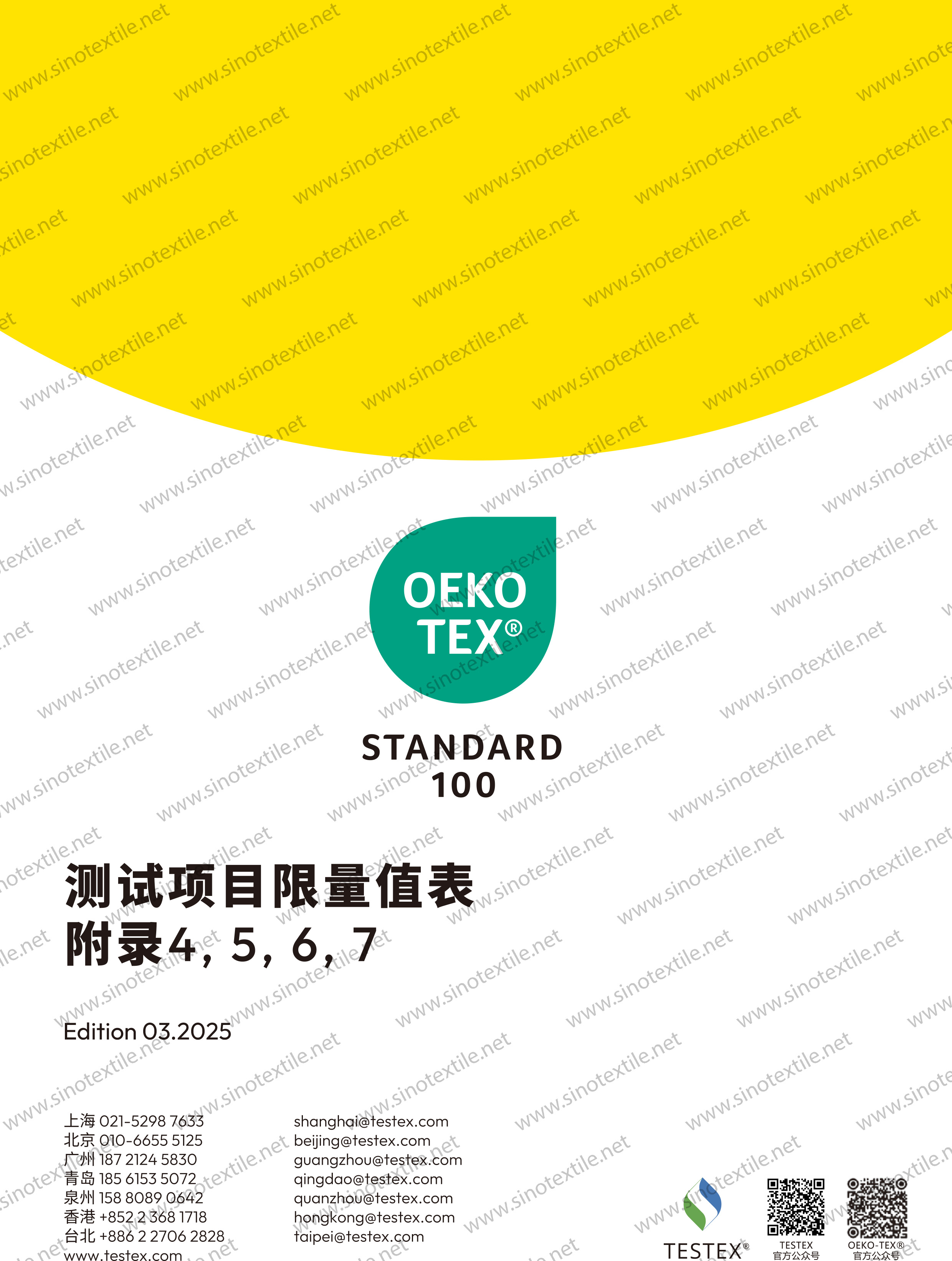 2.1. 2025 STANDARD 100國際環保紡織和皮革協會標準-項目限量值表附錄4,5,6,7 Edition 03.2025